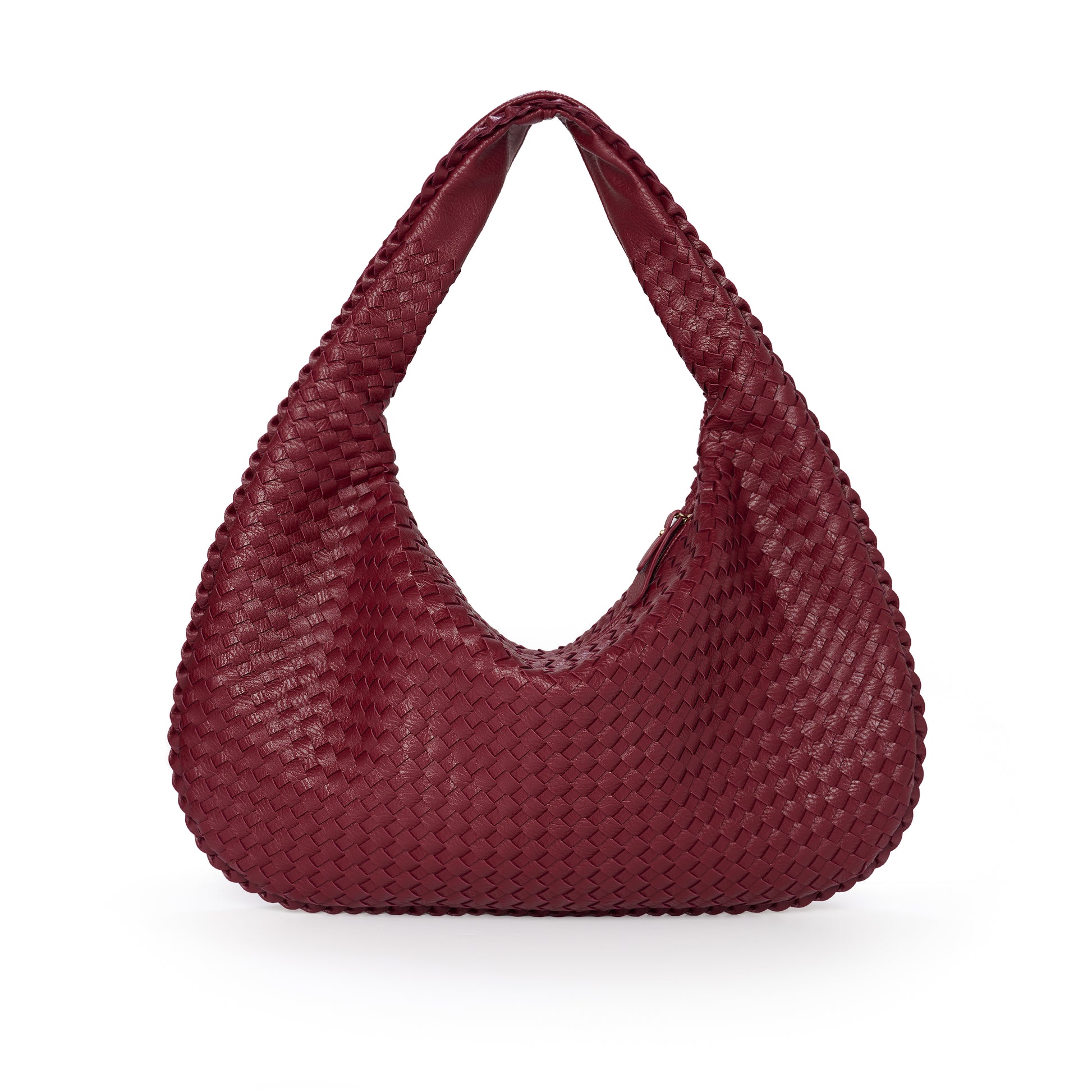 Burgundy Woven Leather Shoulder Bag