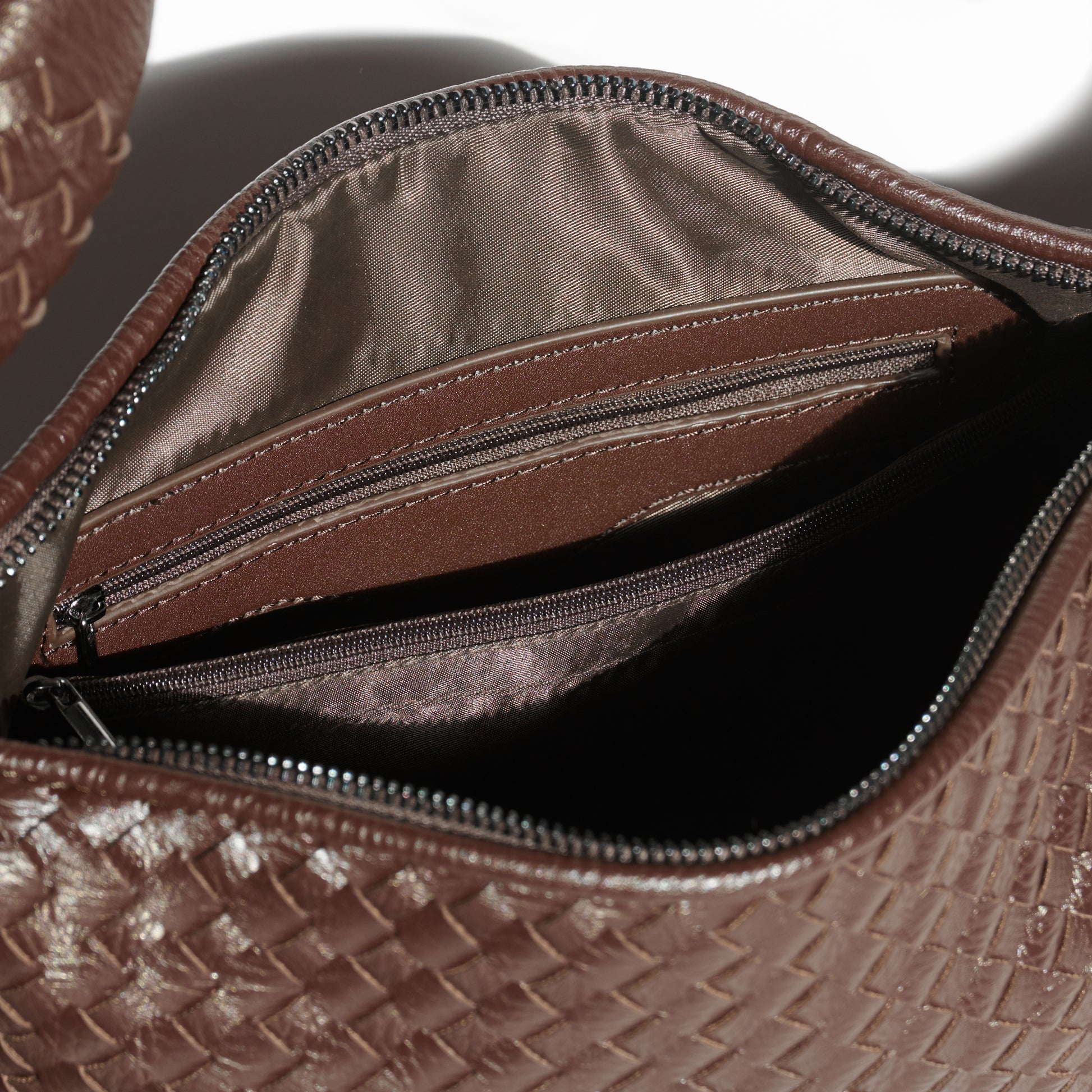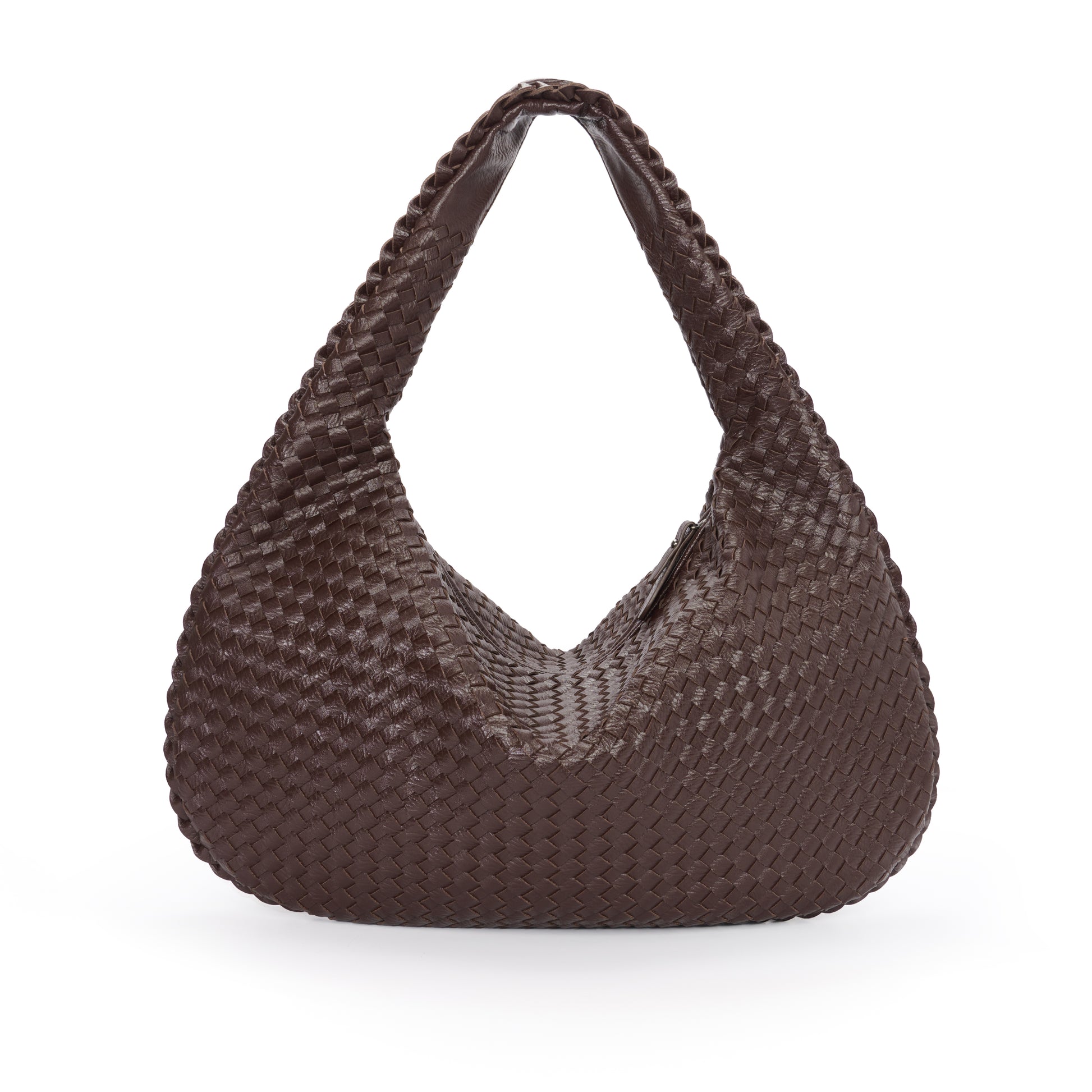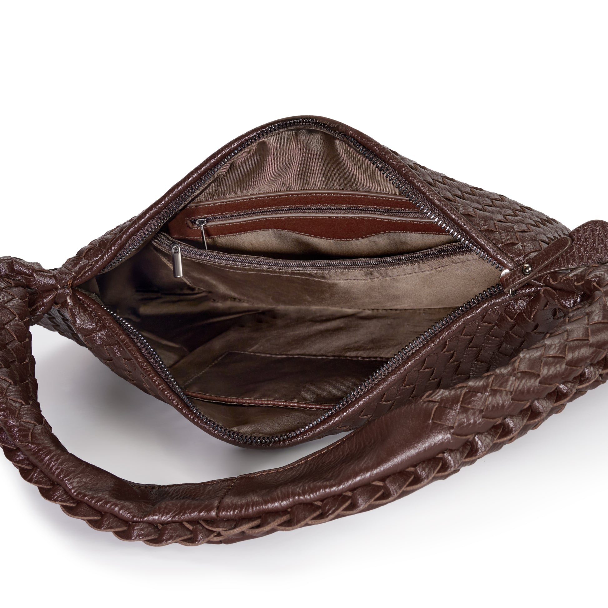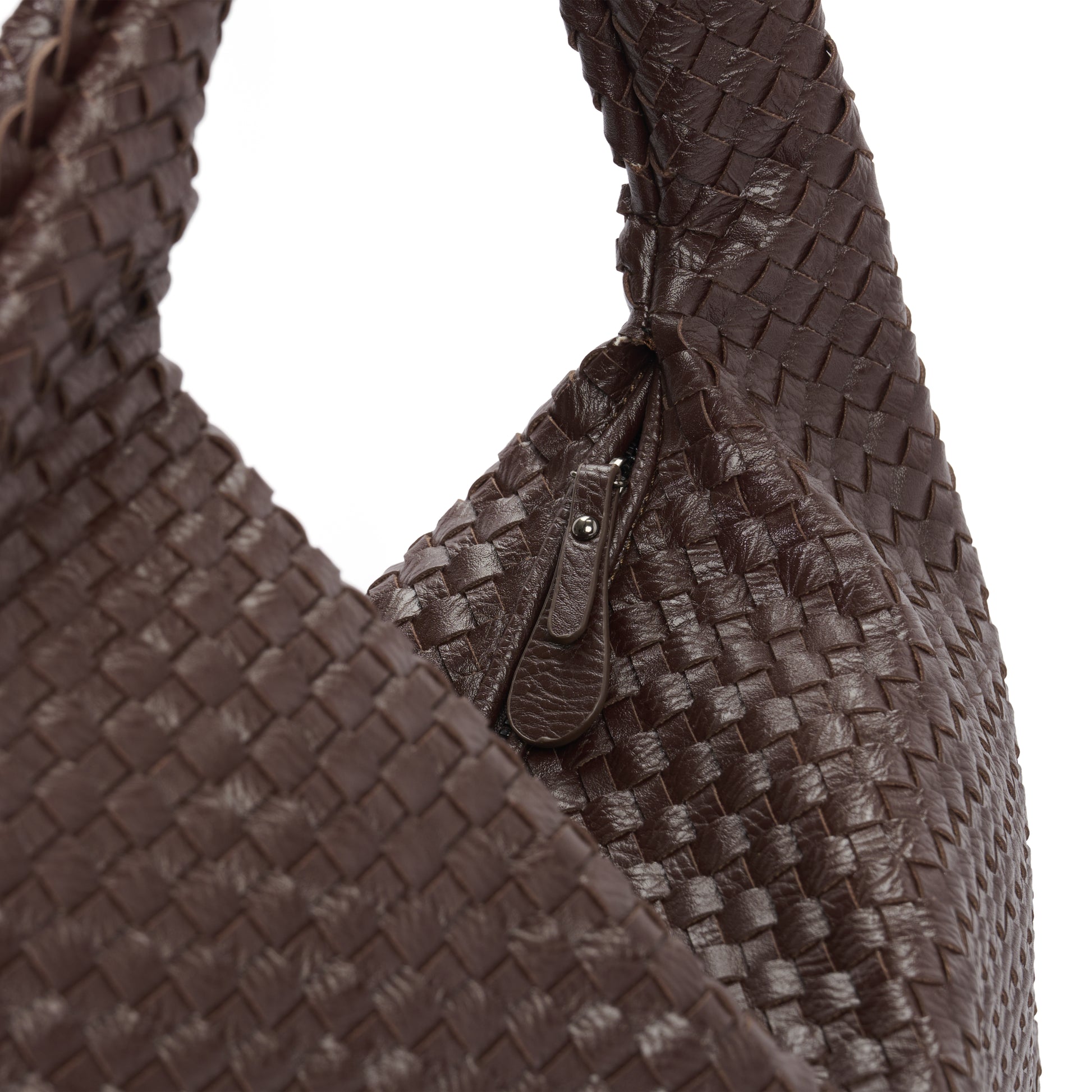 Chocolate Brown Woven Leather Shoulder Bag